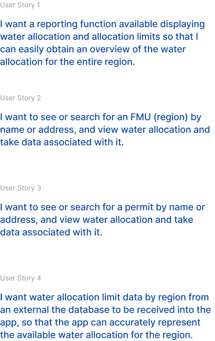 User Story 1: I want a reporting function available displaying water allocation and allocation limits so that I can easily obtain an overview of the water allocation for the entire region.