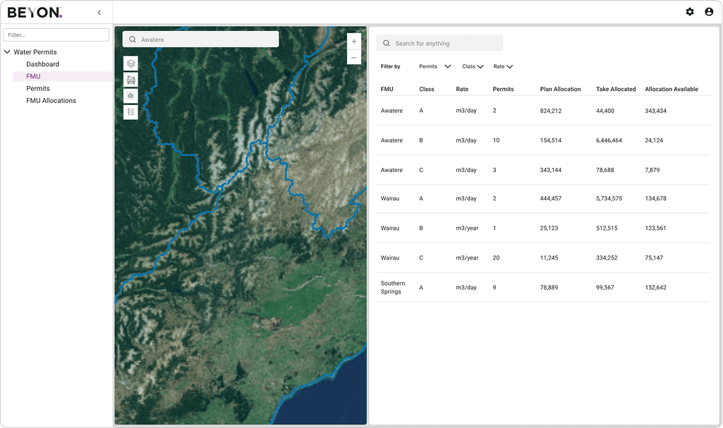 User Story 2: I want to see or search for an FMU (region) by name or address, and view water allocation and take data associated with it.