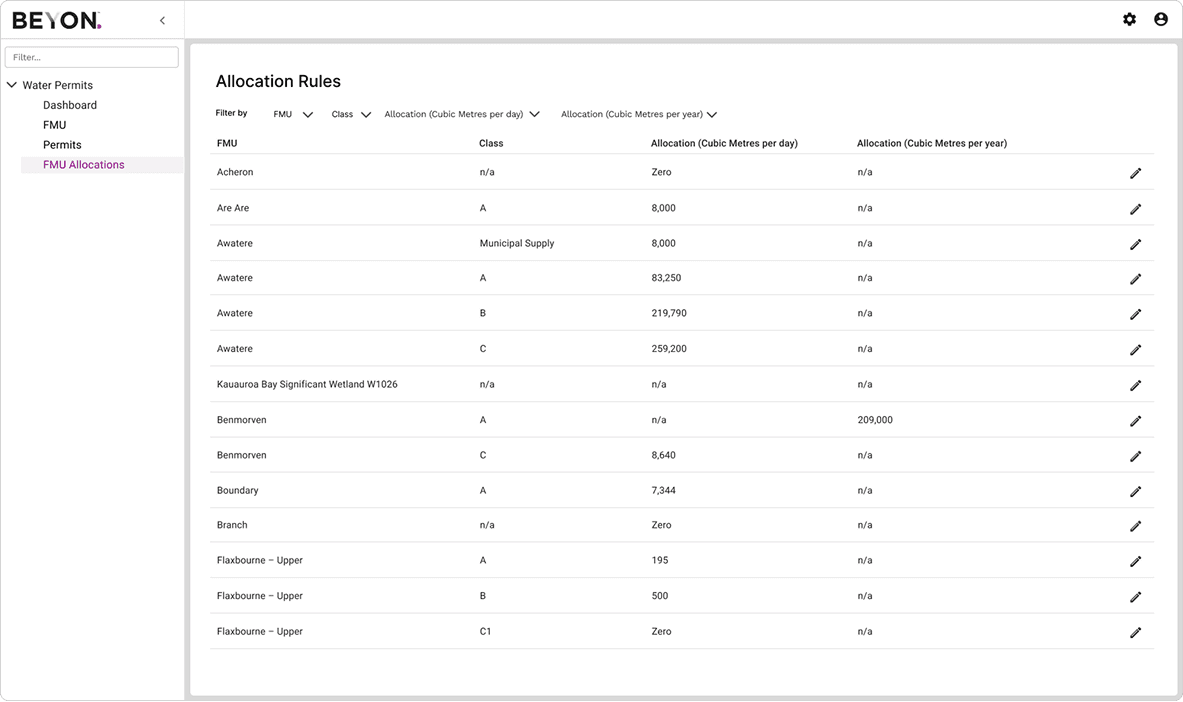 The client also wanted an easy way to view fixed allocation limits and update them when policies change. We designed a simple table to provide this functionality, allowing quick edits and clear visibility of all values.