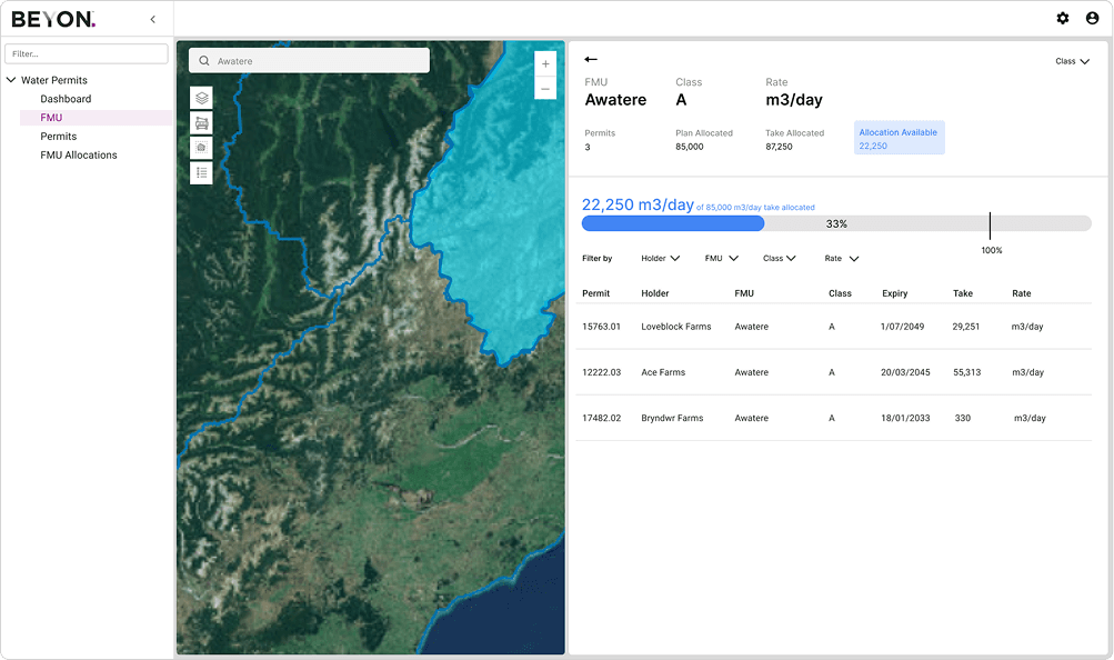 A tool to help the local government track water allocation statuses and water irrigation permits across the region. As a UX designer in the products and services team, I was in charge of designing the tool and work collaboratively between clients, our software developers, and our business analysts.